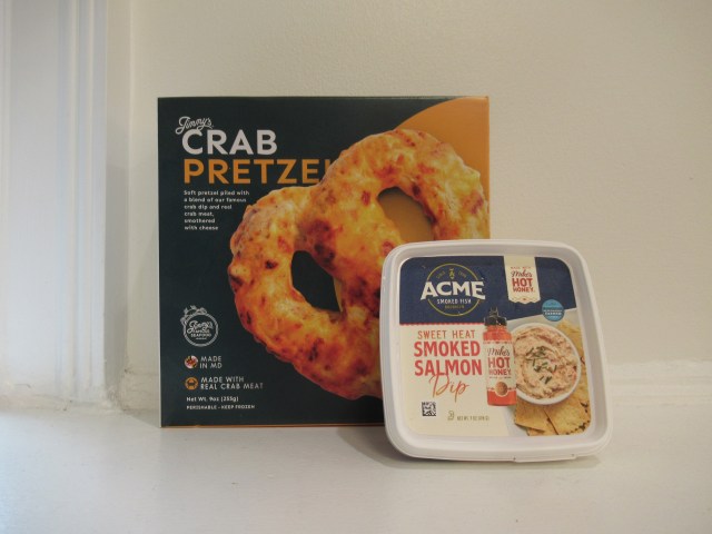 I 100% dipped this cheesy crab dip pretzel into smoked salmon dip.
