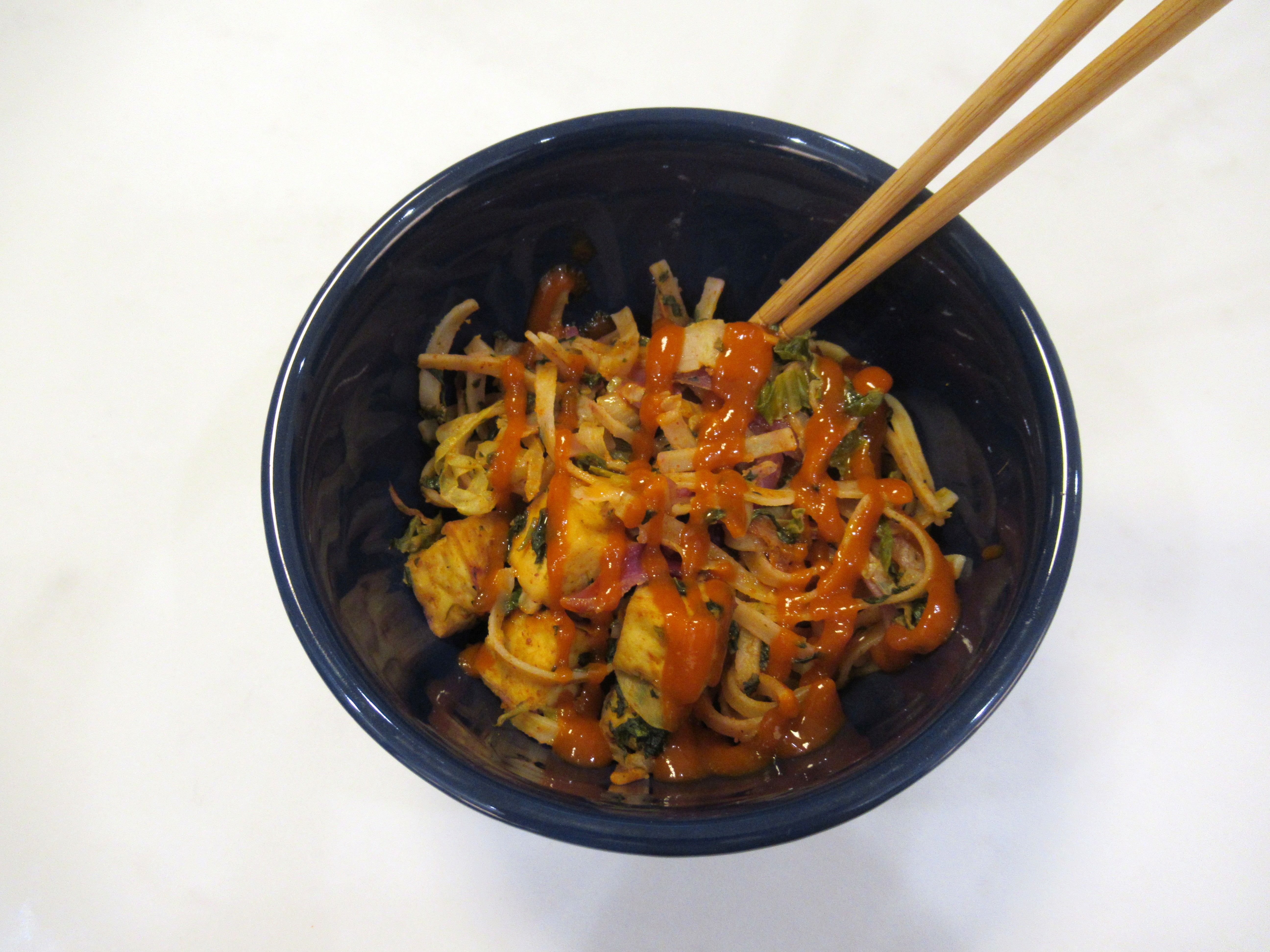 Leftover noodles with Sriracha and chili oil. This was delicious but I did have to swig some milk.