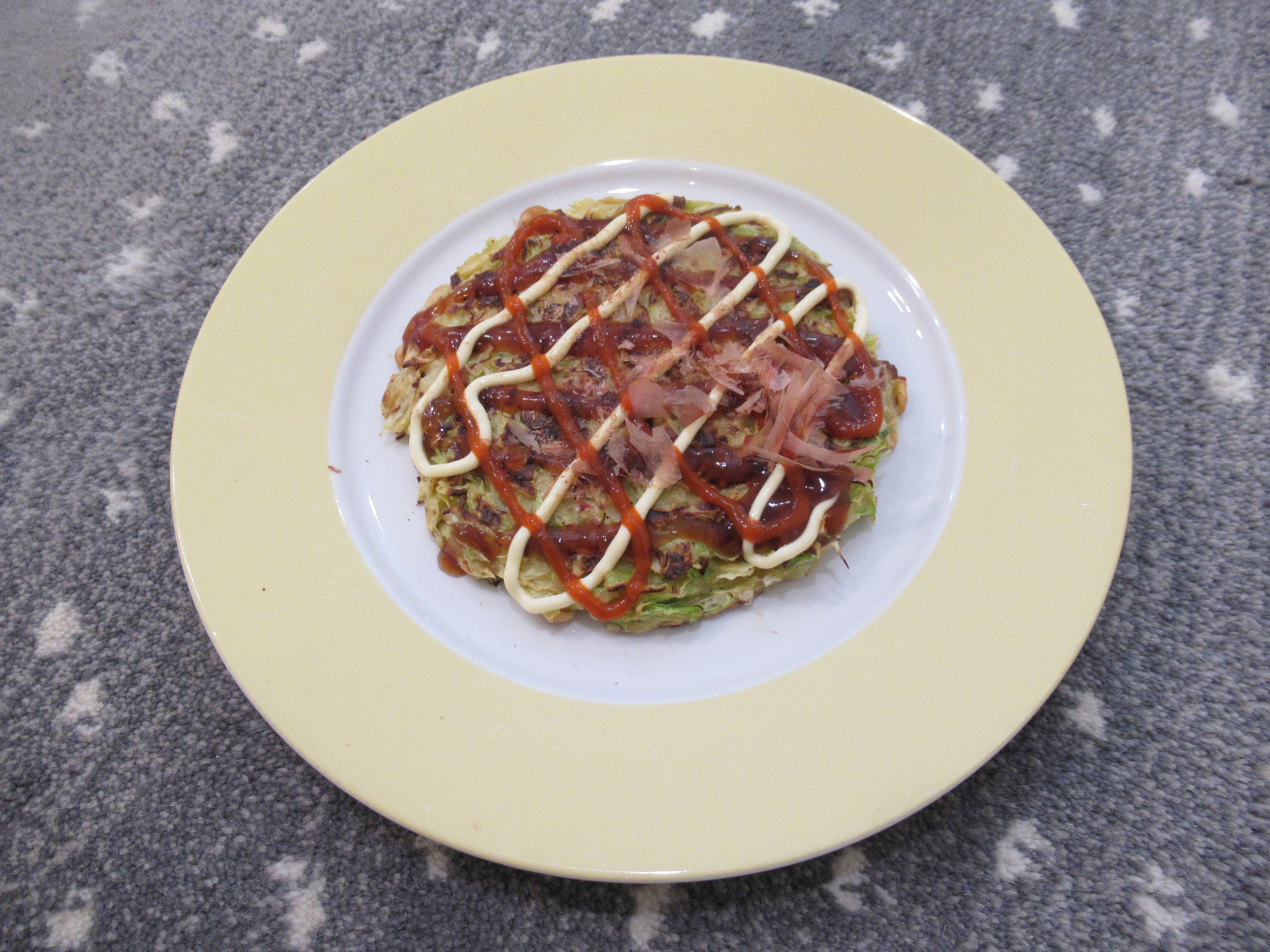 Trader Joe’s frozen okonomiyaki was surprisingly good. It was so creamy. It comes with bonito flakes and sauce and I added Kewpie and Sriracha.