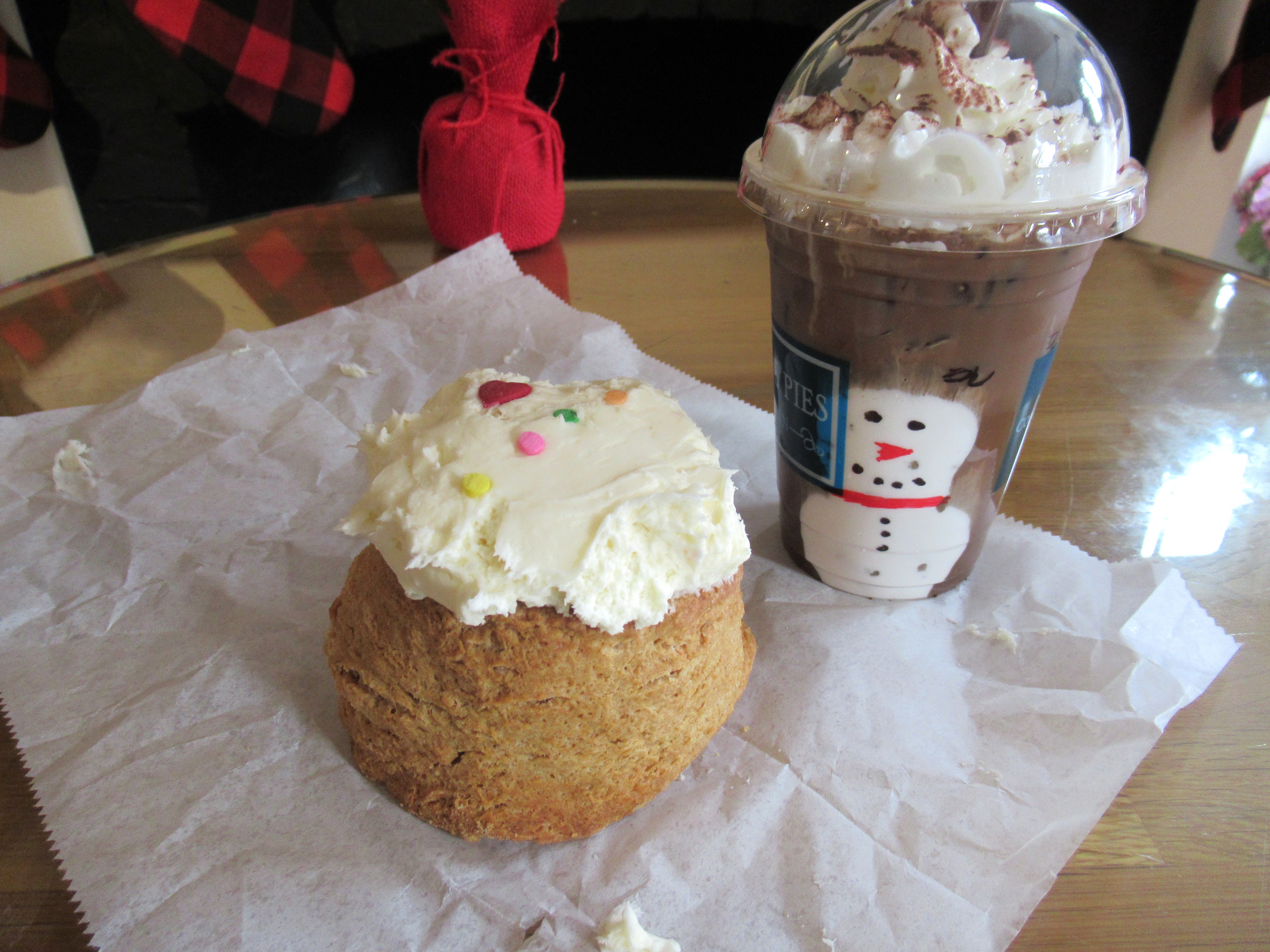 We went on a fun seasonal date the Sunday we got home and shared a gingerbread scone from Hometown Bakeshop and an iced peppermint mocha from Sweetie Pies on Main.