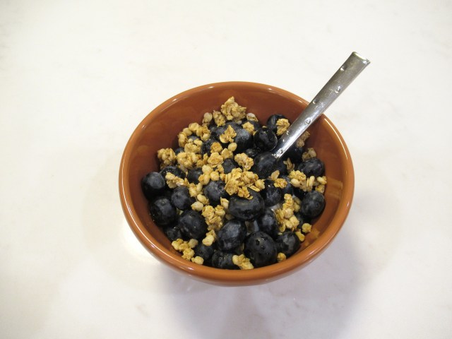 Skyr bowl. With blueberries, and Cascadian Farm oats and honey granola.