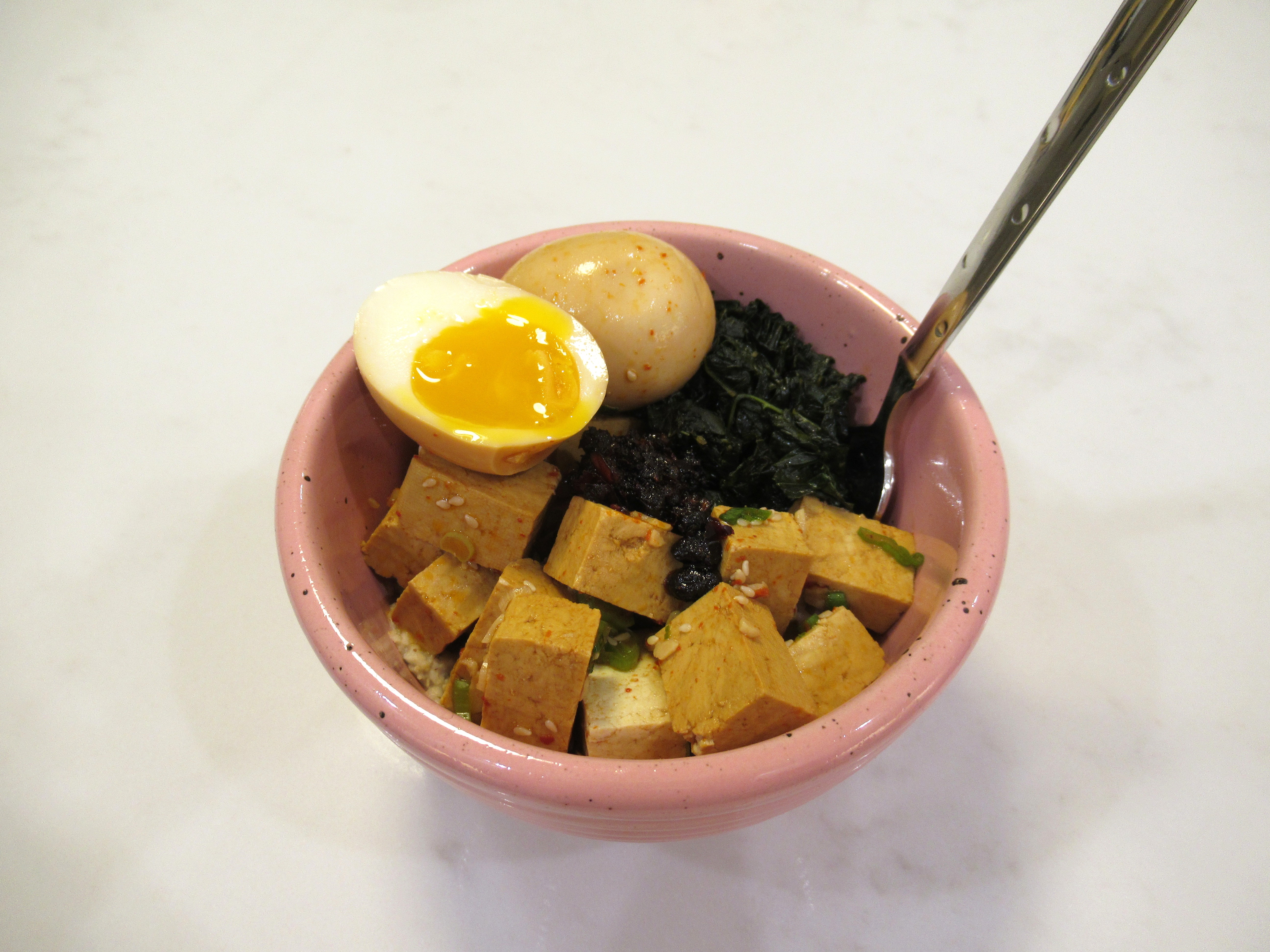 I made Korean marinated eggs and tossed super-firm tofu in the marinade and it turned out great. Served on savory oatmeal with kale (sauteed with gochujang, maple, rice vinegar, and lemon) and chili crisp.