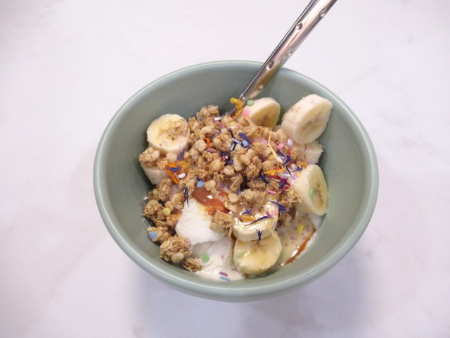Another throwback – these fruit and cream Quaker oatmeal packets are pretty darn good.