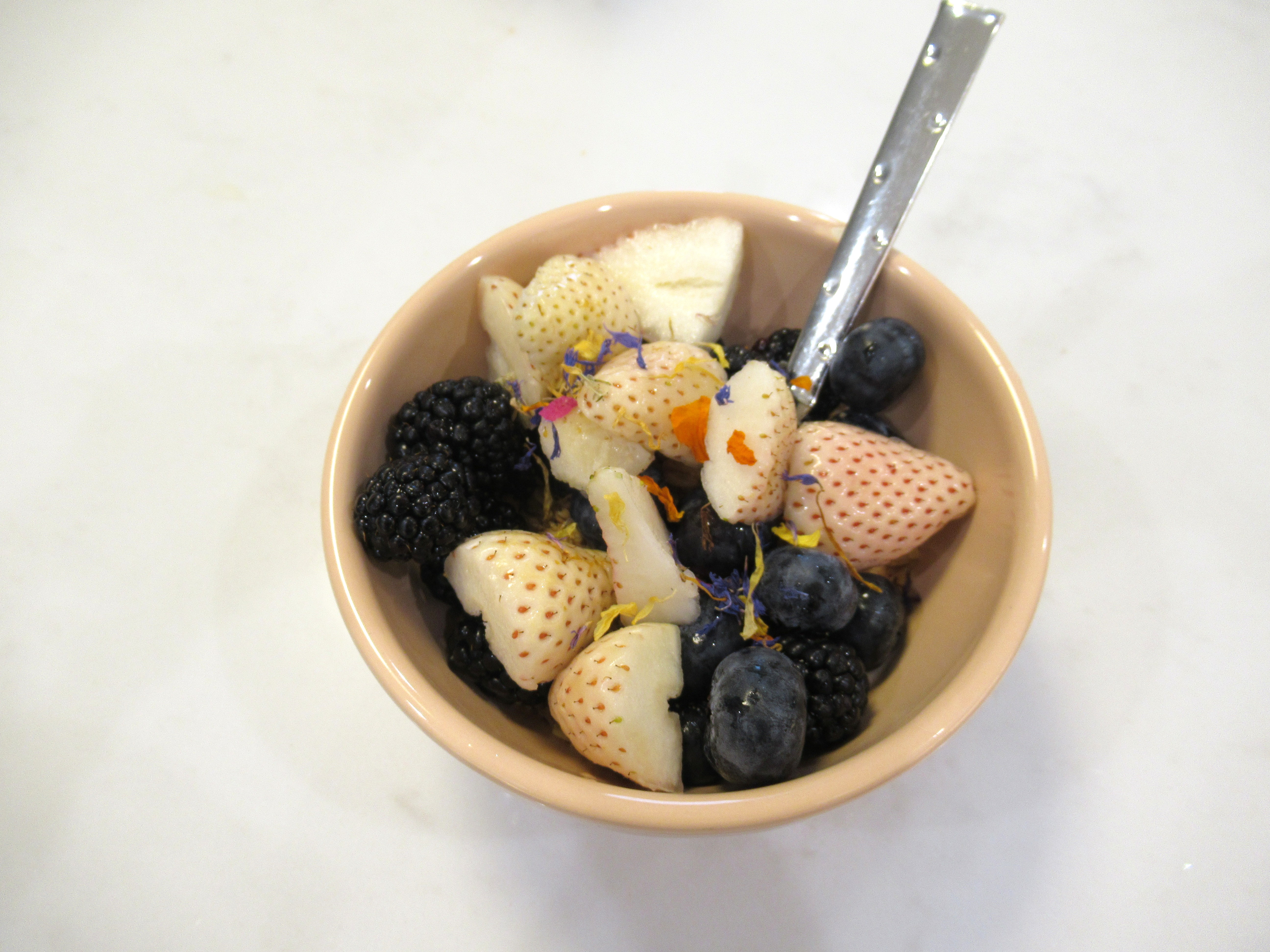 Good loaded skyr bowls this week. This one was plain skyr with blueberries, blackberries, pineberries, and Oat Haus cookie dough granola, and edible flowers.