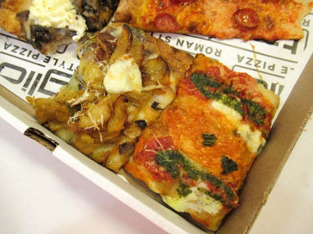 The year we got engaged we watched so much Scrubs while eating pizza that I mentioned it in my wedding vows so when we started the new season/reboot (we loved it!) did so over pizza. I had a marinara/vodka sauce/pesto slice and a potato white slice.