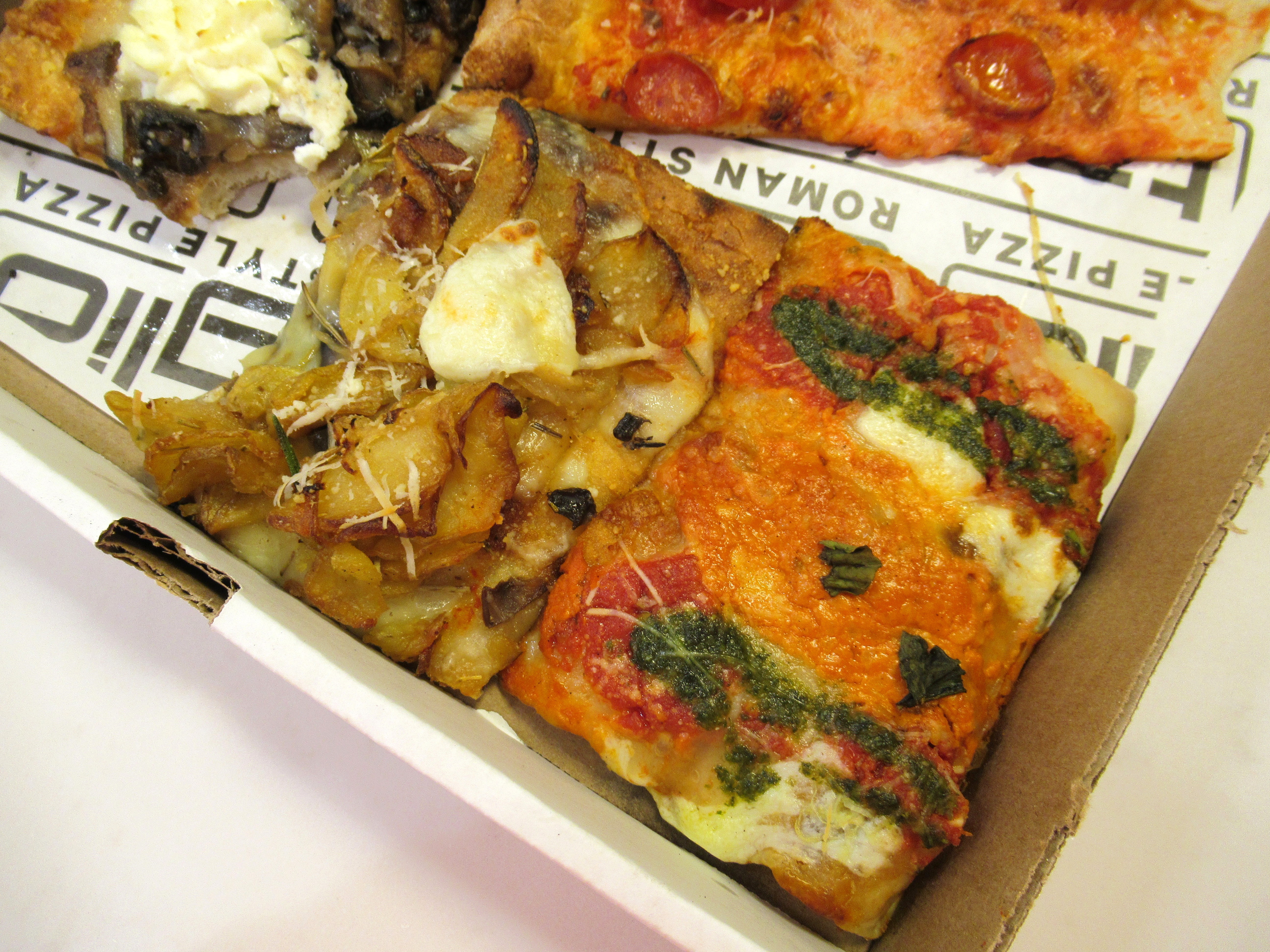 The year we got engaged we watched so much Scrubs while eating pizza that I mentioned it in my wedding vows so when we started the new season/reboot (we loved it!) did so over pizza. I had a marinara/vodka sauce/pesto slice and a potato white slice.