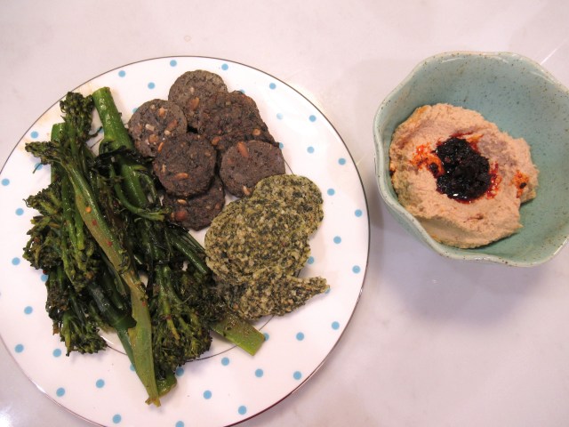 We scooped with TWO types of seaweed crackers (both excellent) – Mary’s Super Seed seaweed and black sesame and Trader Joe’s sticky rice seaweed crisps.