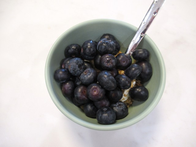 Blueberries aren’t my number one favorite food (a three way tie between nachos, Cherry Coke Zero, and Milk Bar’s marshmallow brownie), but they are probably the food I eat most often. Plain skyr with granola and jumbo blueberries.