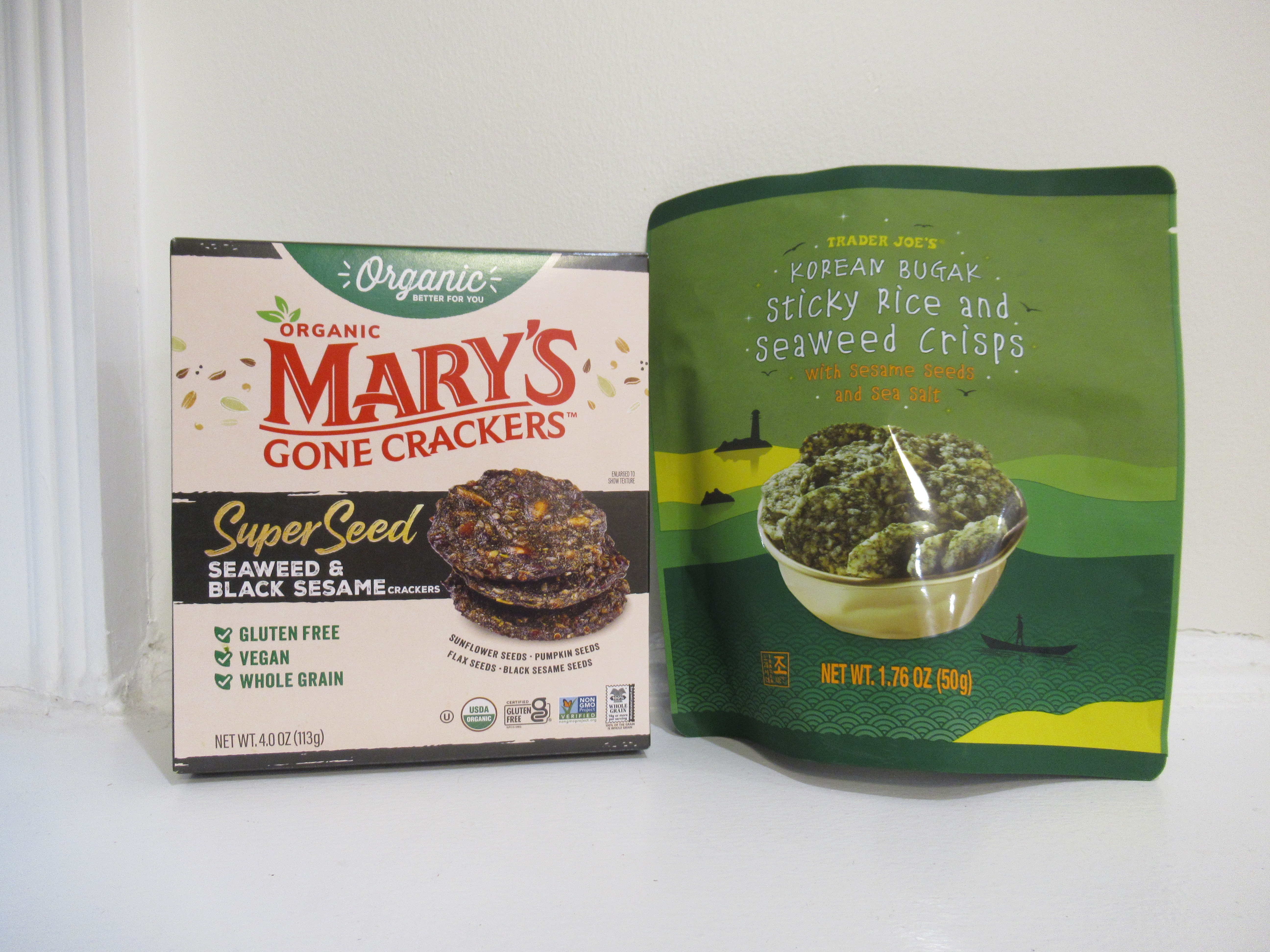 We scooped with TWO types of seaweed crackers (both excellent) – Mary’s Super Seed seaweed and black sesame and Trader Joe’s sticky rice seaweed crisps.