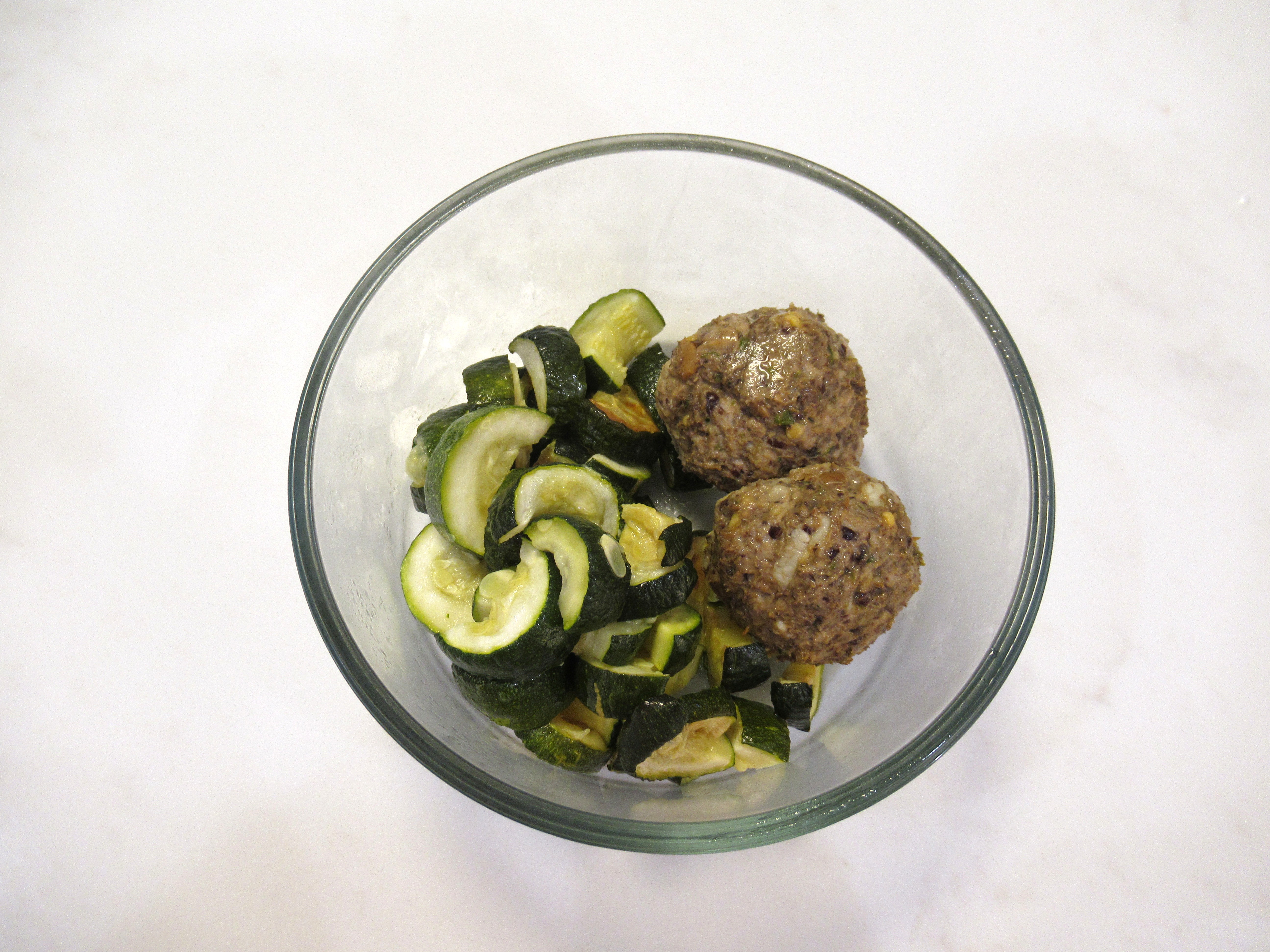 Leftovers. Turkey and black bean meatballs and zucchini. I added a lot of green Choloula.