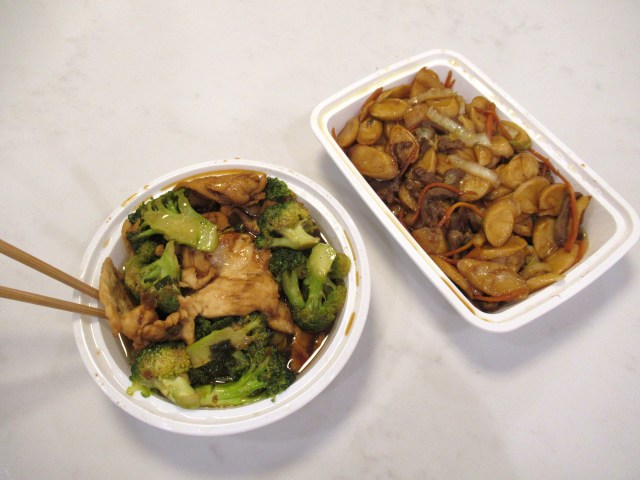 Shanghai You Garden. We shared chicken and broccoli and rice cakes with beef.