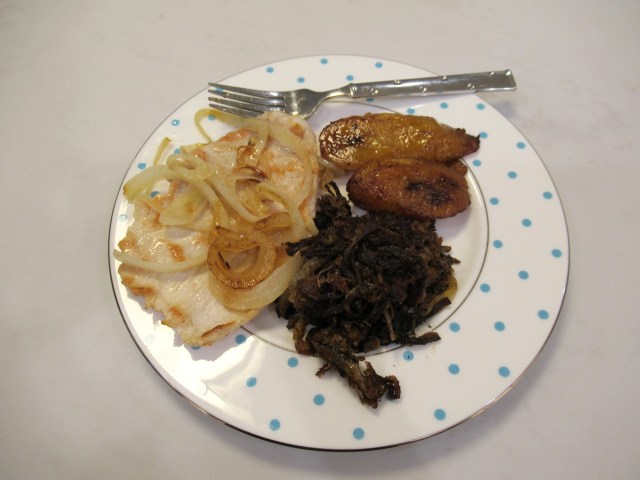 Rincon Crillo. Vaca Fritta, grilled chicken with onions, and maduros.