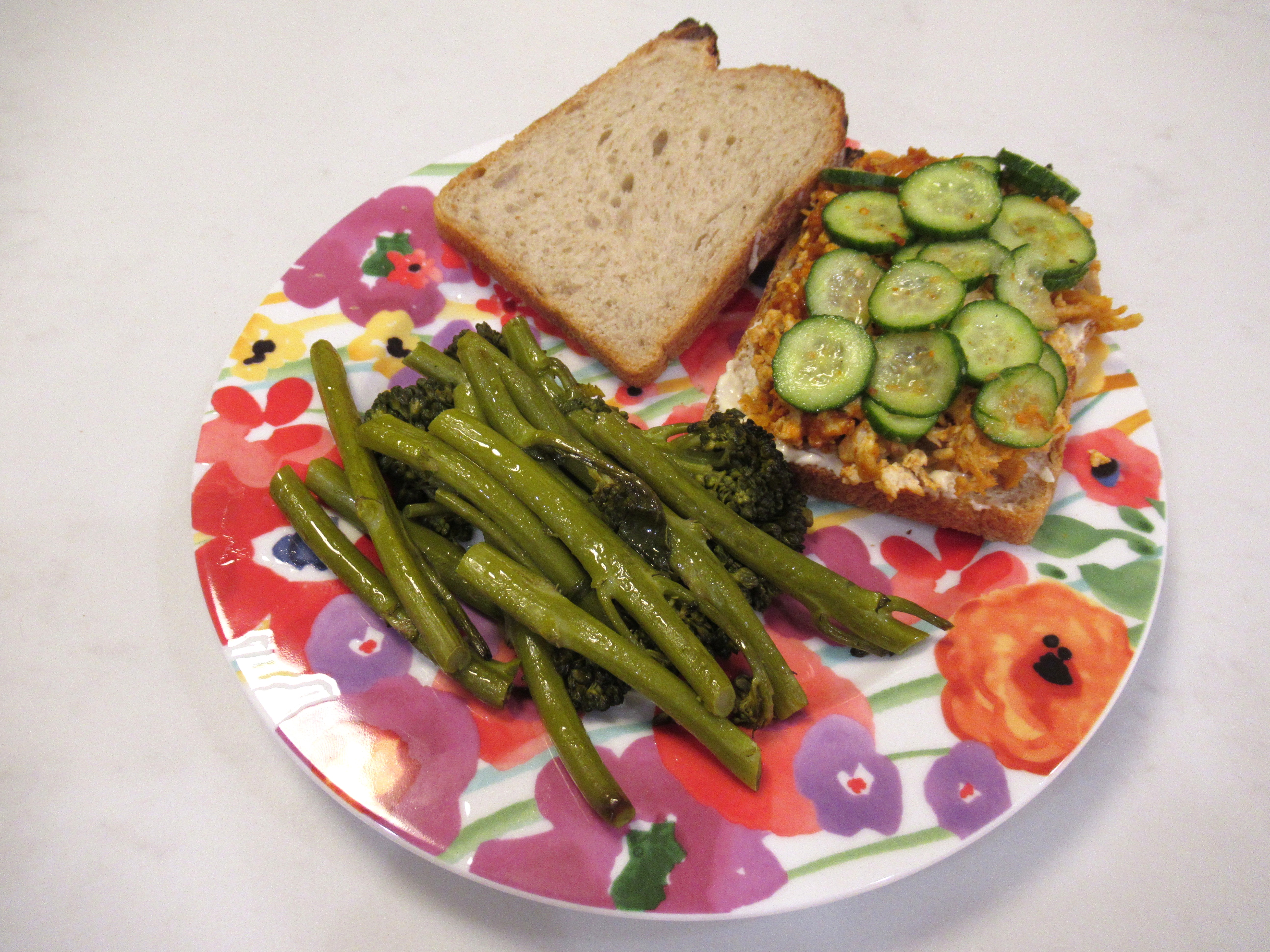 We used the bread to make wonderful sandwiches. Sourdough pullman / ginger miso mayo / shredded, baked super-firm tofu tossed with peanut butter, gochujang, lime juice, brown sugar, and veggie broth / sliced baby cucumbers marinated in white sugar, Sichuan peppercorn, Milu everything spice, and rice vinegar. Plus roasted baby broccoli.