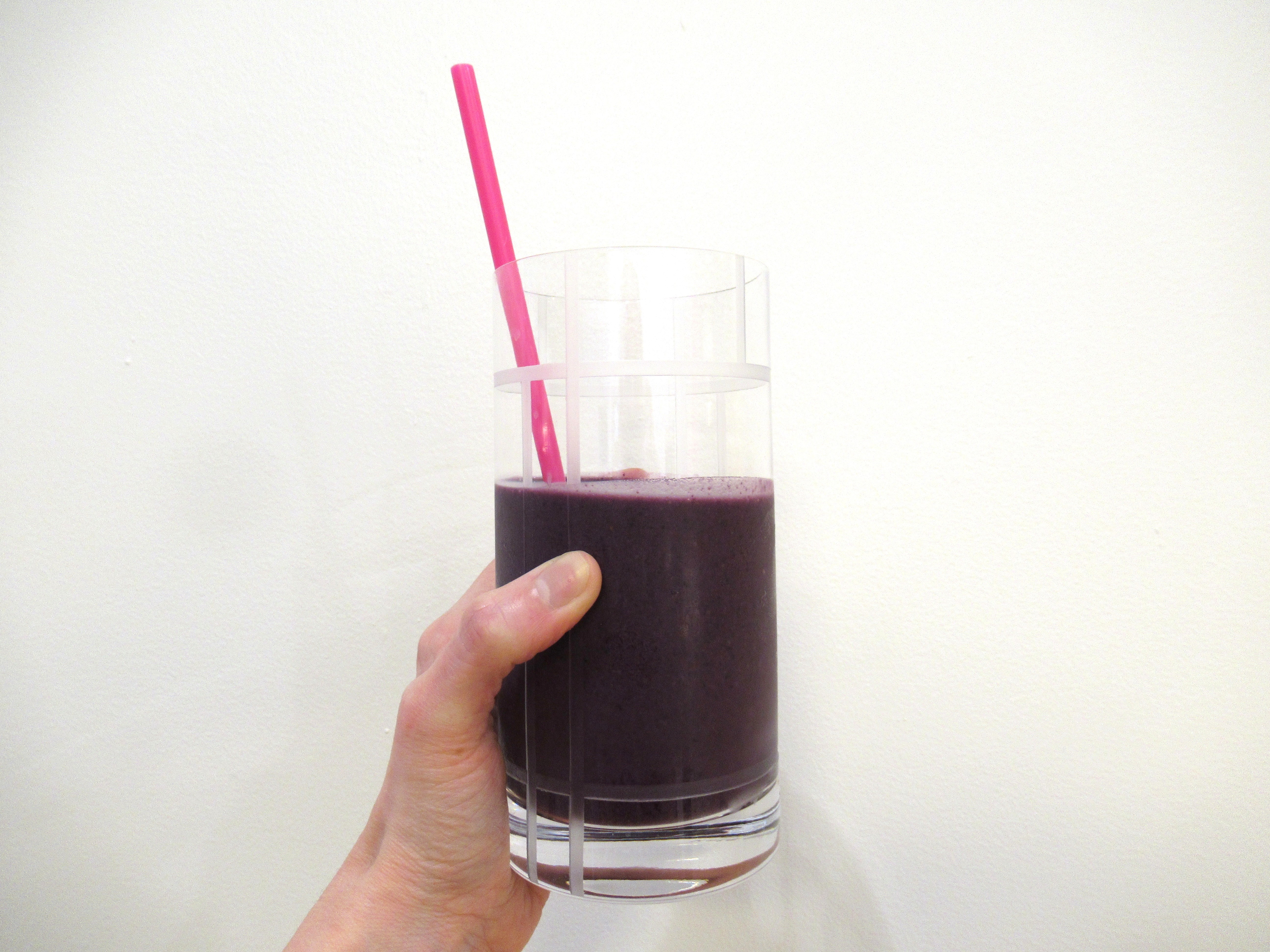 See also – a blueberry smoothie with dark cherries, chocolate protein powder, vanilla bean powder, and water.