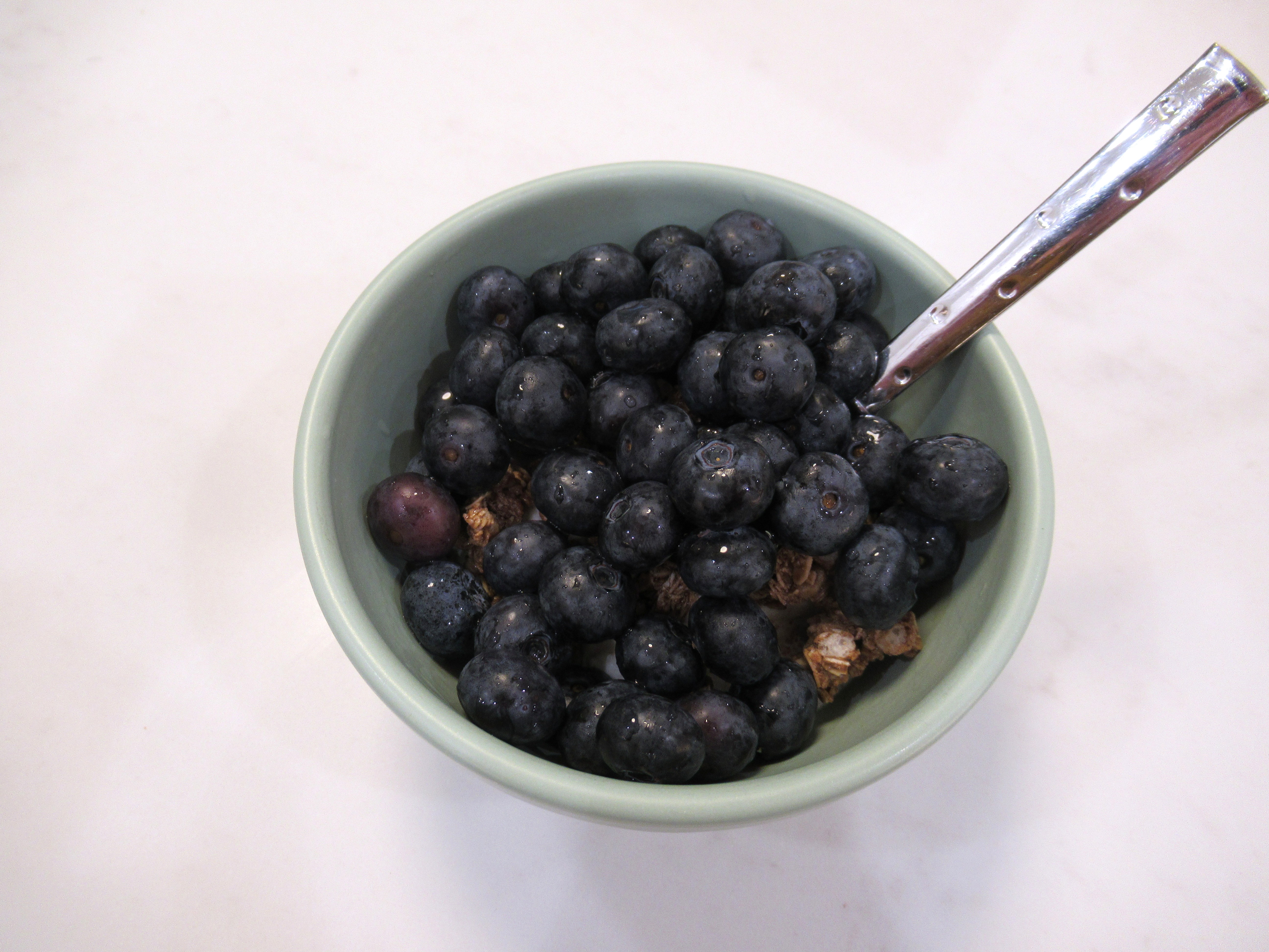 A mostly blueberry bowl, plus plain skyr and Cascadian Farm chocolate chip cookie granola.