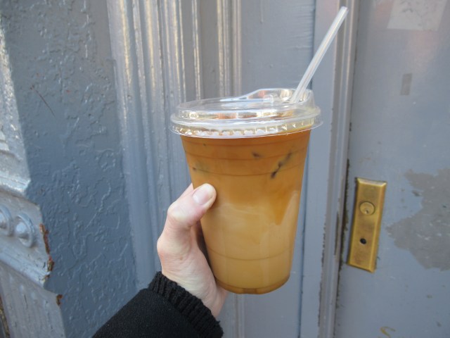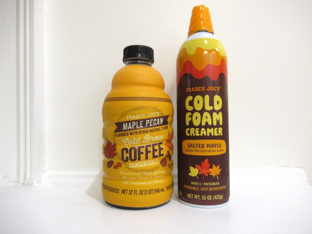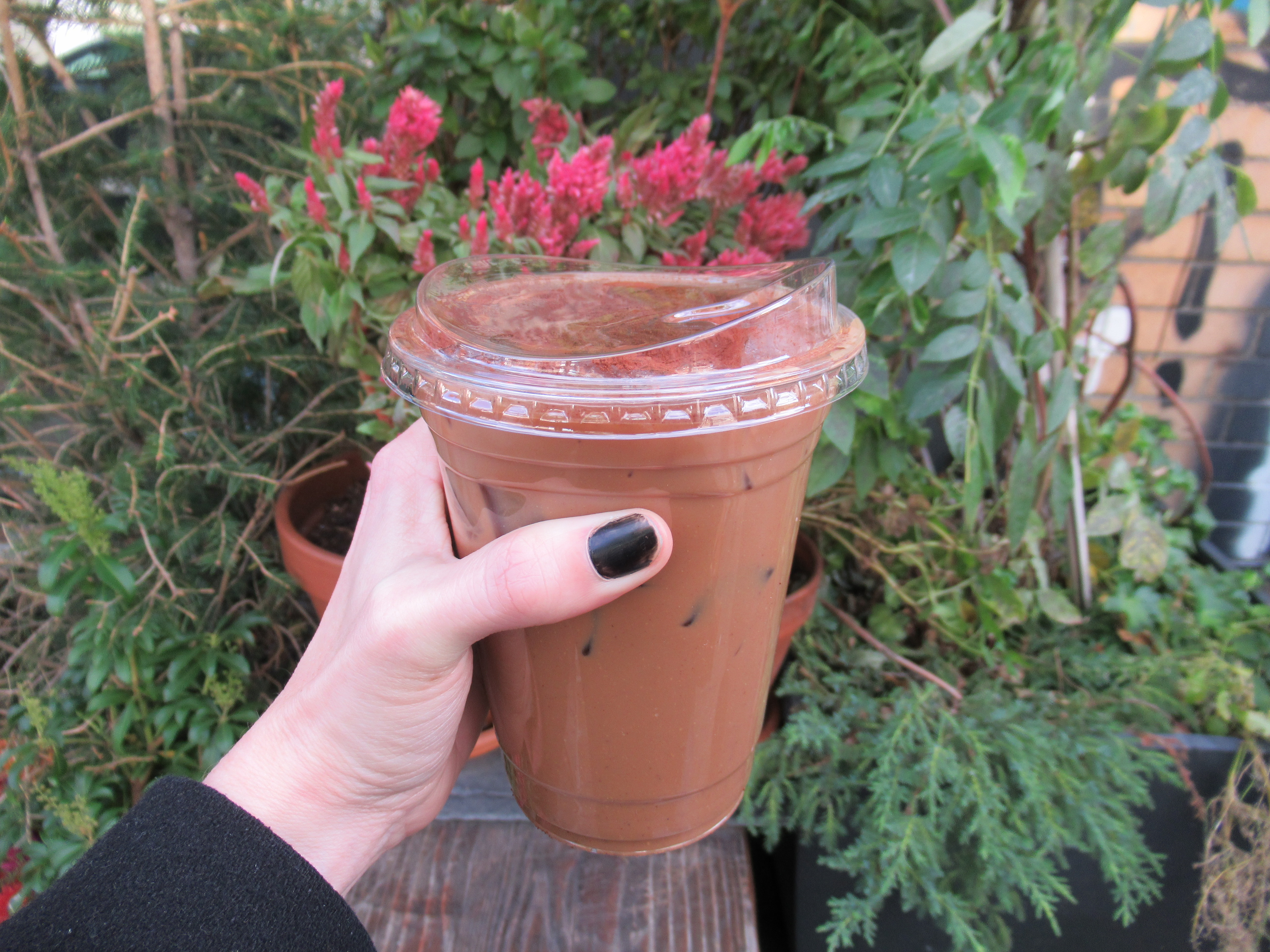 Homemade s’mores iced latte. Marshmallow creme / Trader Joe’s chocolate shell / Trader Joe’s maple pecan cold brew concentrate / milk infused with graham cracker, cinnamon, vanilla bean powder, and salt.
