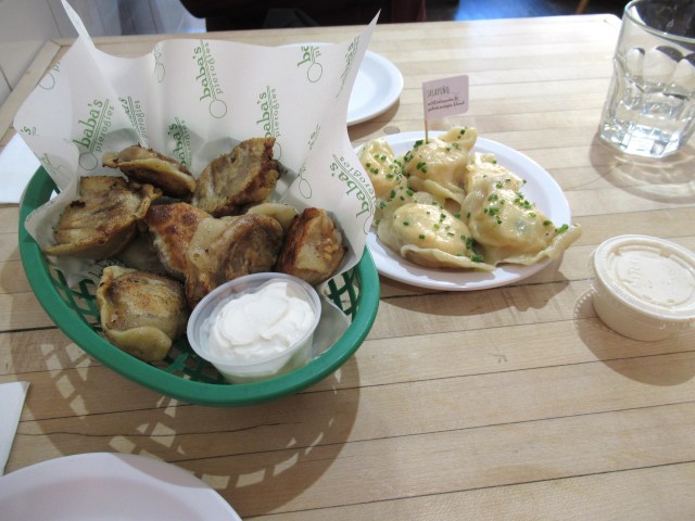 Thanksgiving dinner dumplings with local turkey, cranberry herb stuffing, housemade gravy, thyme, and a side of housemade cranberry sauce.