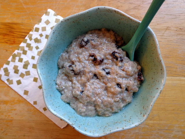- Remove the pan from the heat and stir in cinnamon, vanilla, and raisins.