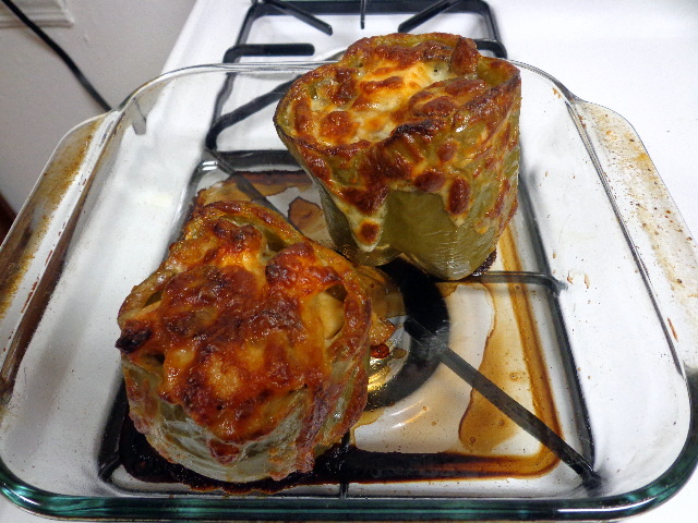 9. Remove dish from oven and top each pepper with a slice of provolone cheese.  Return dish to oven and bake an additional 10 minutes.