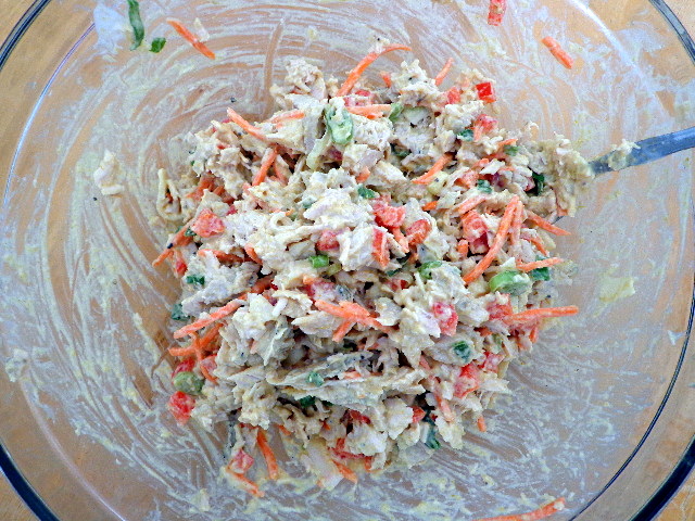 - In a large bowl, whisk together mayonnaise, ginger, curry paste, and fish sauce.