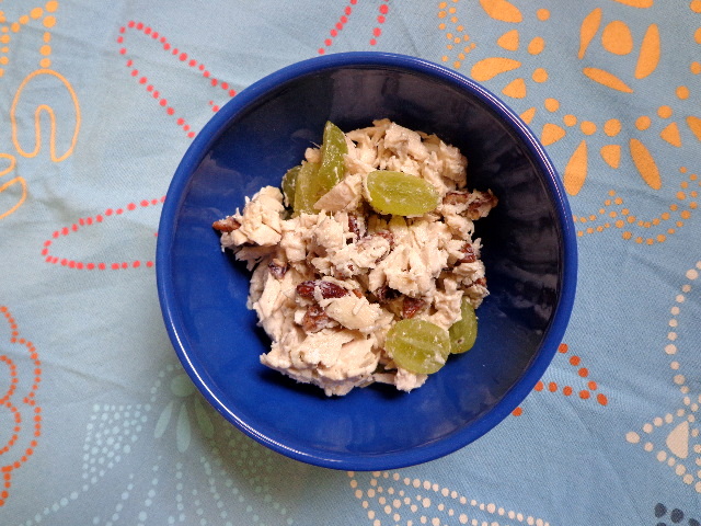 Yields: 4 servings; Prep Time: 15 minutes; Remember – chicken must be prepared ahead of time