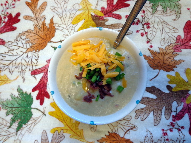 This soup is like putting a loaded baked potato in a blender! Be sure to cook everything in the same pot so that the bacon flavor can infuse through. If you use low-sodium broth you may want to add salt, but otherwise this needs no seasoning.