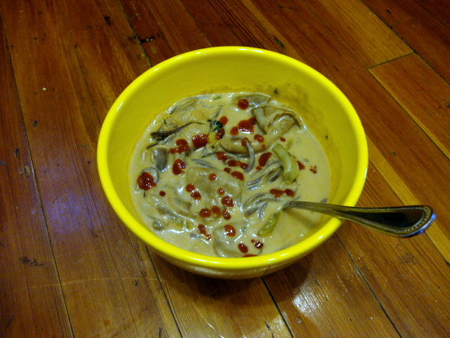 I’m not going to claim that this soup is as tasty as what you’d get at a good Thai restaurant, but for a white girl in under 30 minutes it’s a keeper! My soup may not be authentic but my version is vegan, low in sodium, and less than 400 calories per bowl. Go ahead and double up on the Thai hot peppers if you’re in a family that’s okay with spice. Soup thickens substantially as it cools so this is not a dish to make ahead.