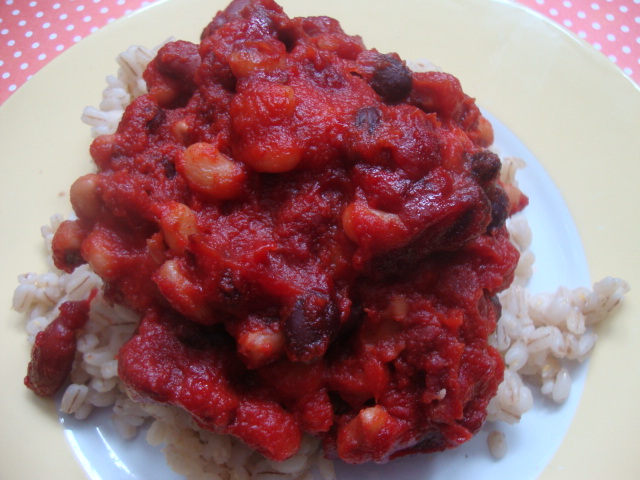 I won’t claim that these beans are Southern bbq good, but they are still pretty darn good! They are more smokey than sweet, and very thick. I recommend serving them on top a baked potato or a pile of grains.
