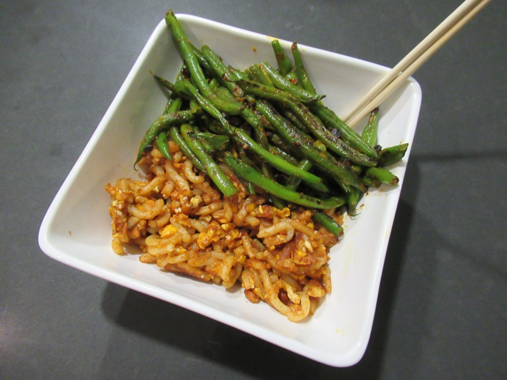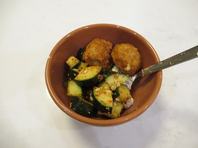 Take out dinner from Shanghai You Garden in 99 Ranch. Red bean sesame ball (and a pork floss mochi for Adam) / rice cakes with shredded chicken / fantastic scallion pancake / edamame with pickled cabbage and tofu // beef and rice from the Vietnamese spot next door