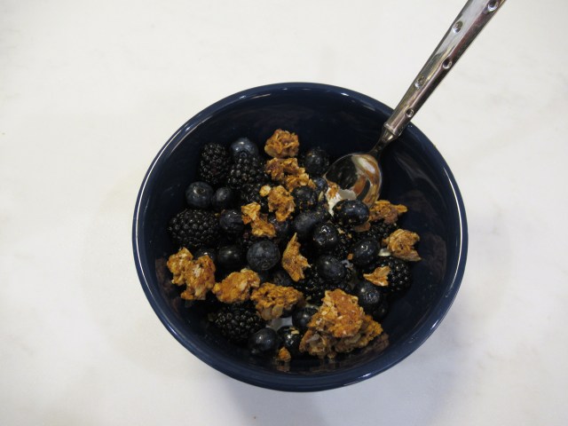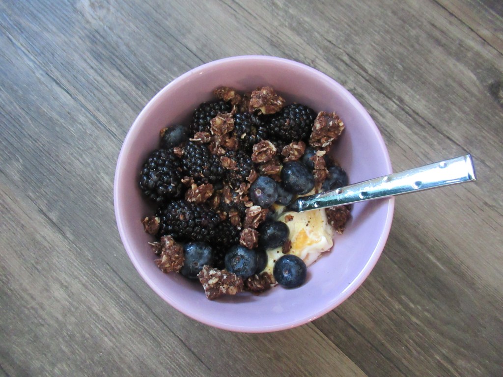 Yogurt bowls. Plain skyr with cinnamon granola and blueberries. We buy Sweetest Batch and Super Jumbos every week now and I am hooked.