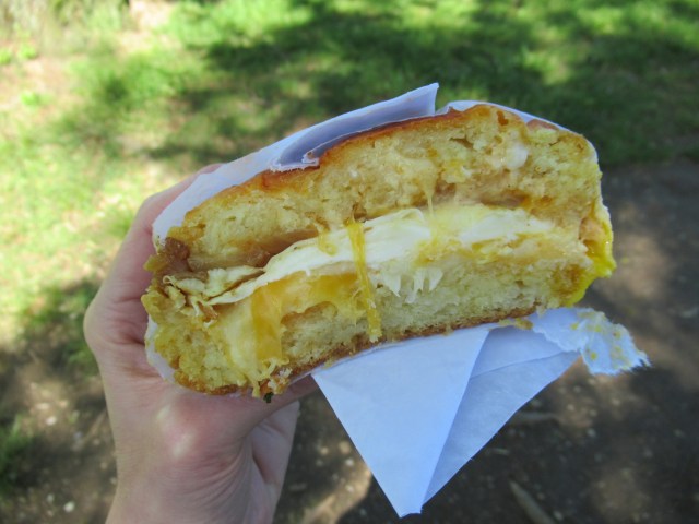 Double egg sandwich. More brioche and house sauce with a fried egg and a cheesy soft-scrambled egg.