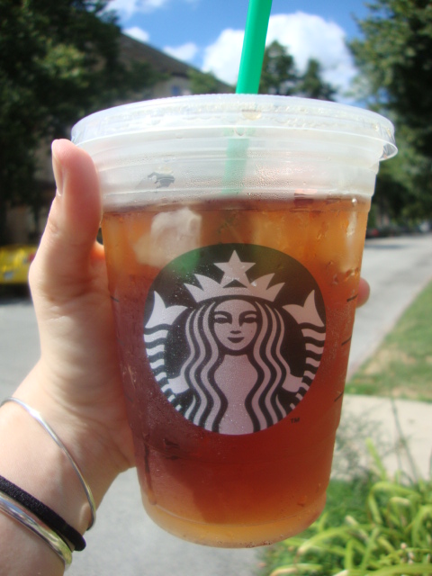 On a short walk with the dog, Starbucks dopio espresso with the rest of the cup filled to the rim with skim milk.