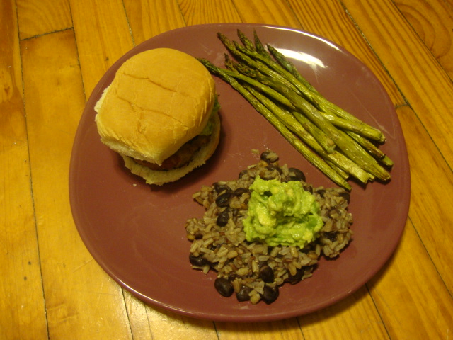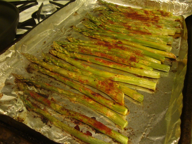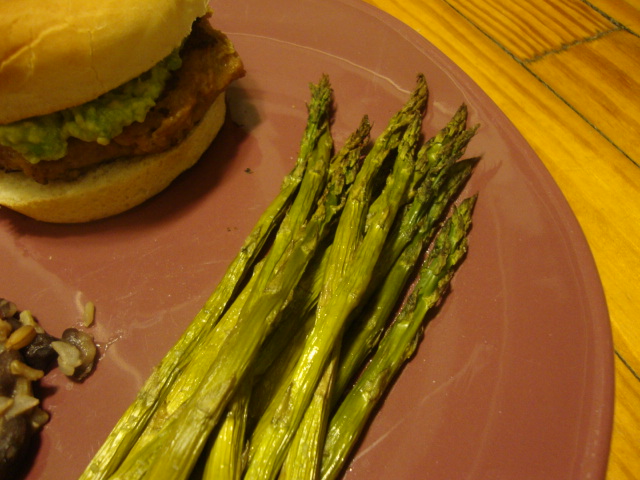 Veg – roasted veggies, asparagus salad, a piece of chili garlic eggplant.
