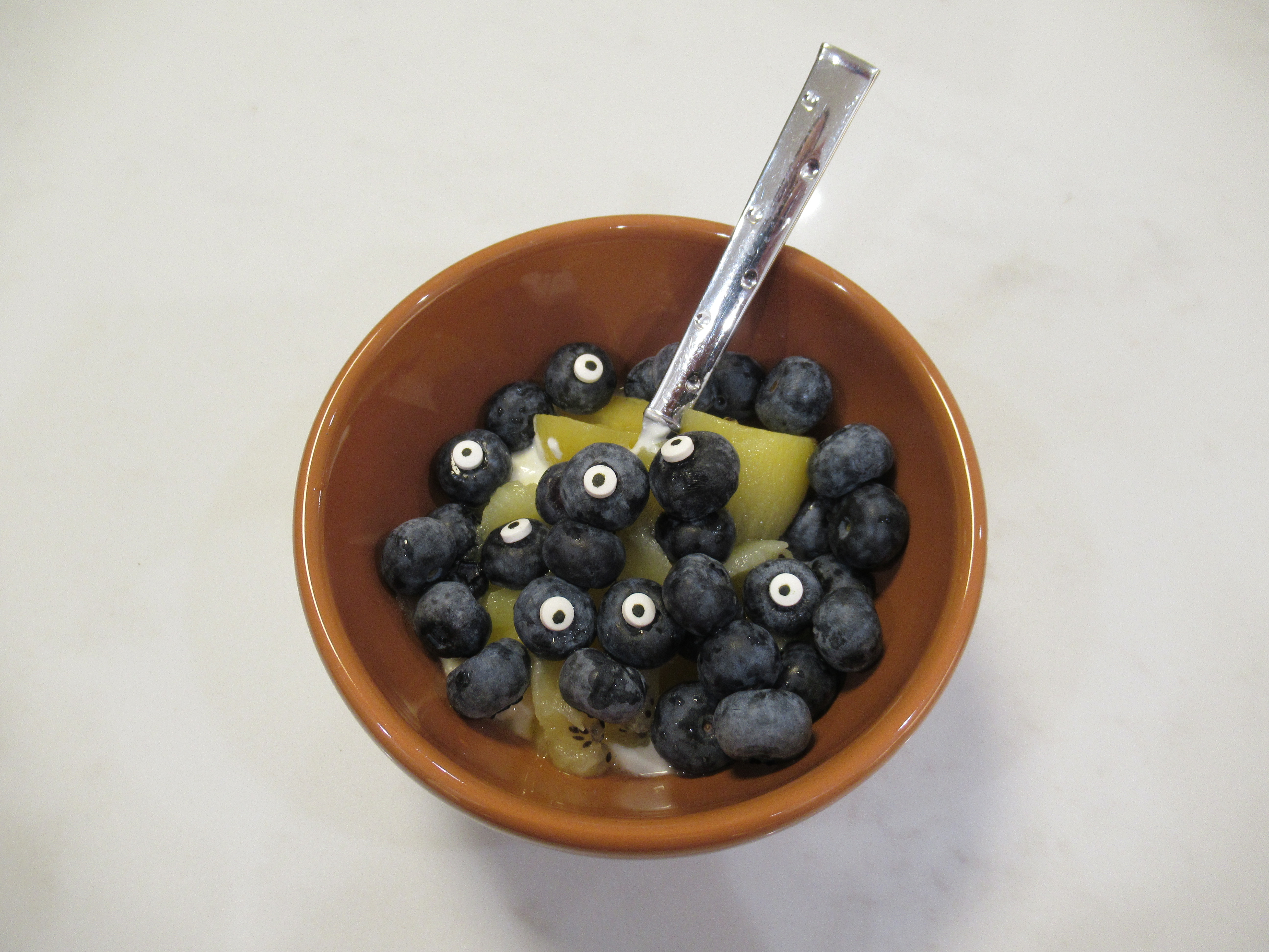 Plain skyr with chopped egg yolk nougat (it was amazing, like a marzipan cake) and blueberries.