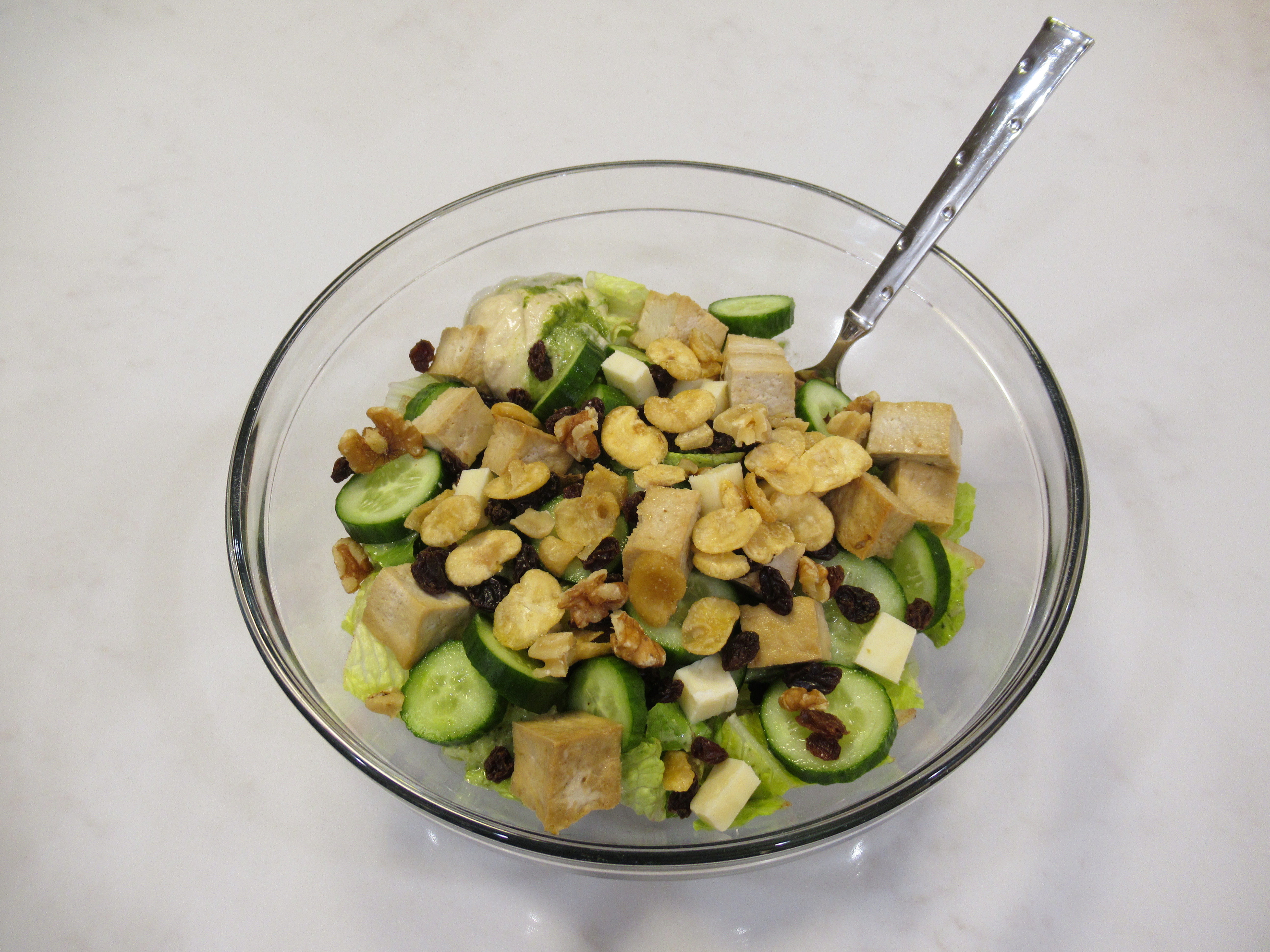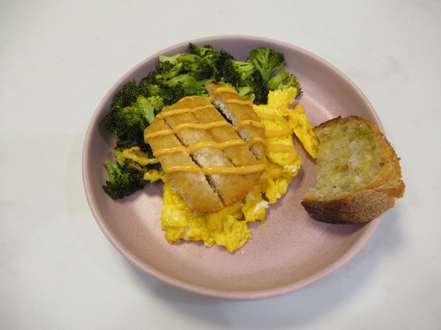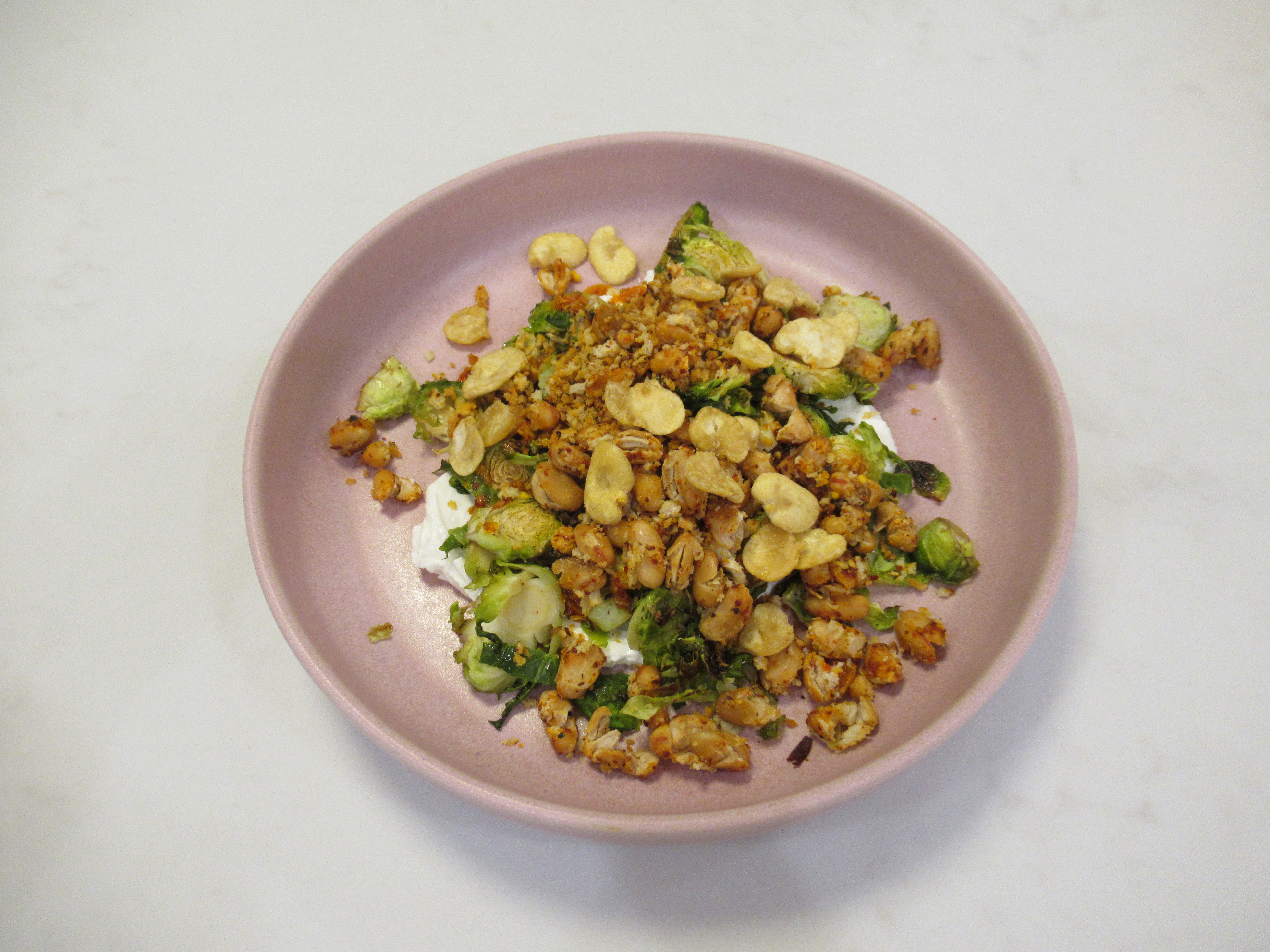 Tuna salad. Canned tuna with bell pepper, water chestnuts, peanuts, ginger, Duke’s mayo, plain skyr, red curry paste, and lemon juice. Plus roasted cauliflower with a labne hot honey dipping sauce (labne, chili oil, gochugaru, and honey).