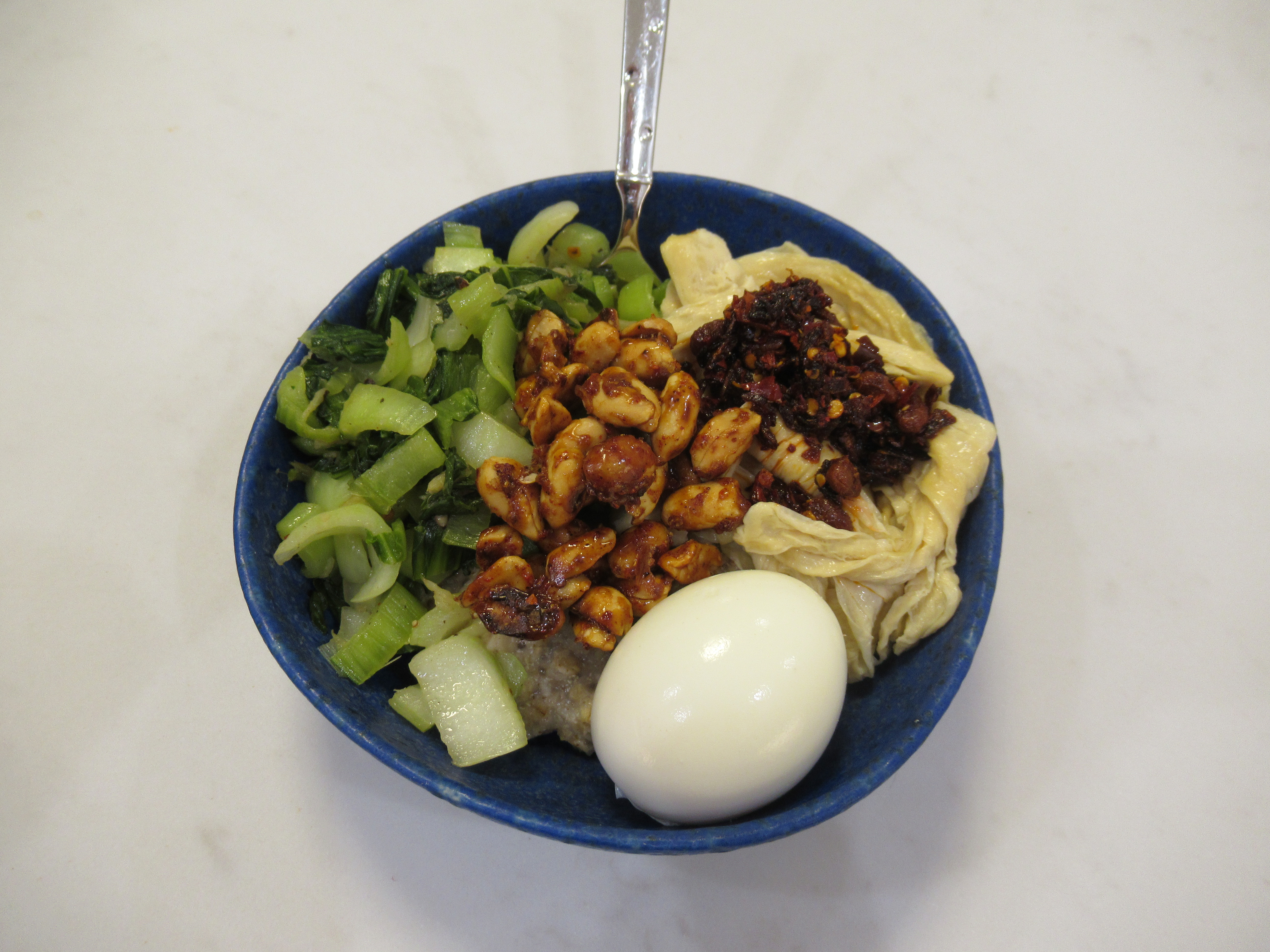 Braised tofu bowls. Brown rice with roasted cauliflower rice / sauteed bok choy with green onion / firm tofu cooked in butter and braised in chicken broth, rice vinegar, gochujang, gochugaru, Sichuan pepper, sugar, and sesame seeds / cashews.