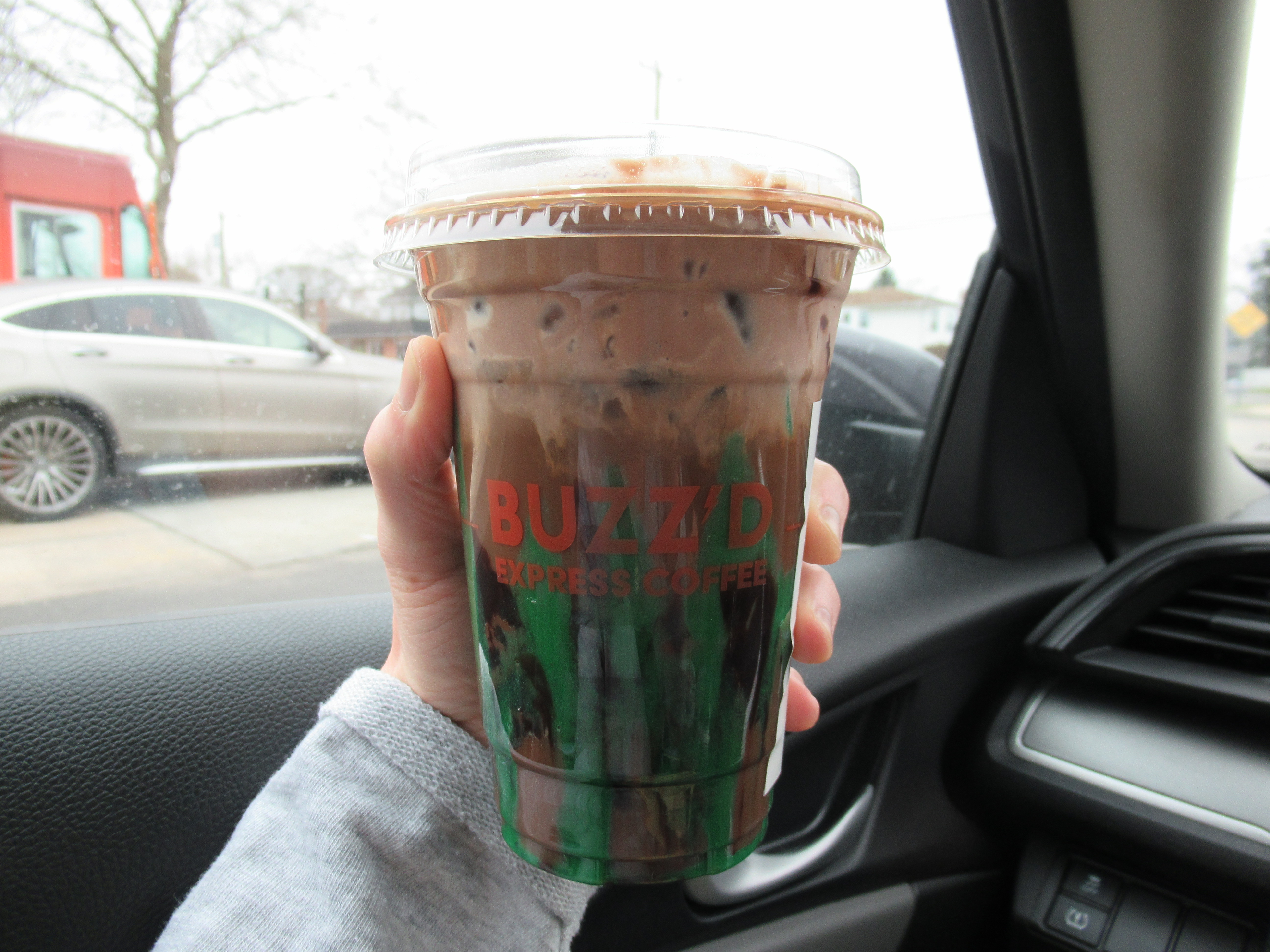 Horchata-ish iced latte. I blended leftover brown rice, milk, brown sugar, cinnamon, and vanilla bean powder in the blender. Unstrained, with ice, half and half, and espresso.