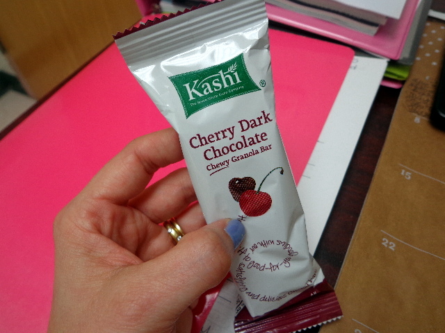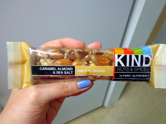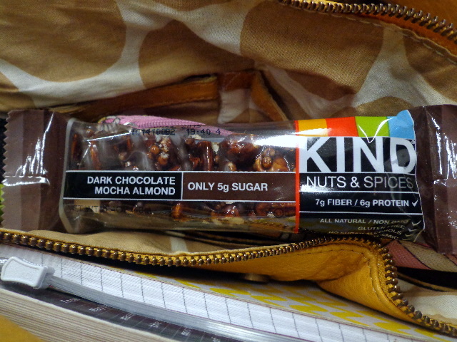 Amazing hot chocolate and a vanilla almond KIND bar.