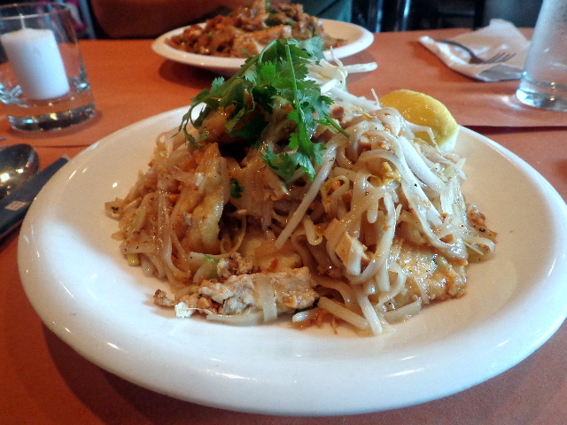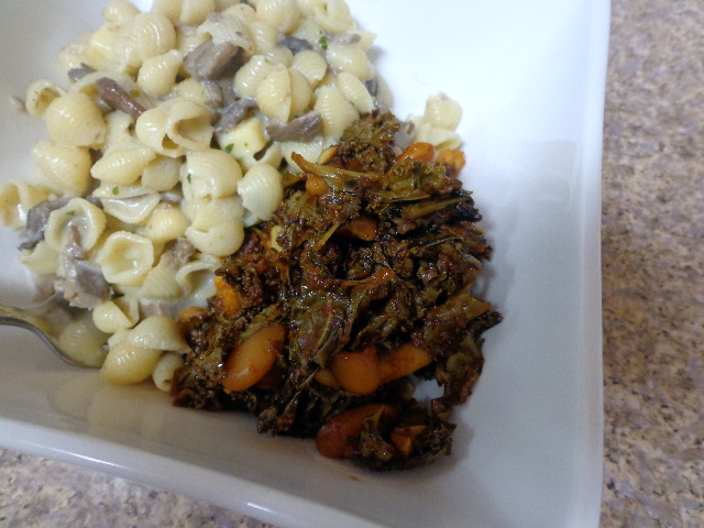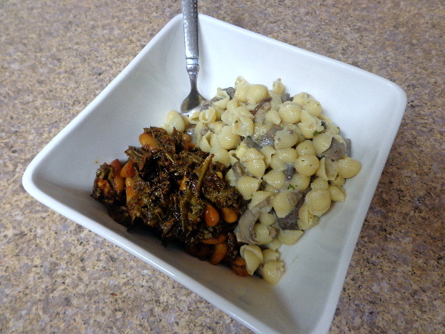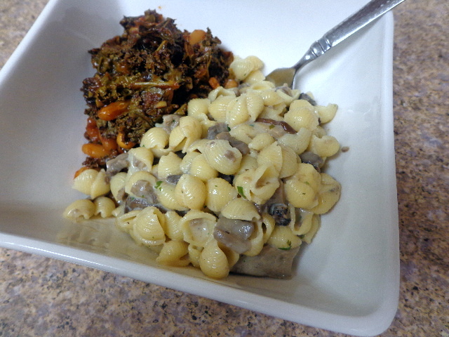 Adam’s dinner blew mine out of the water. Butternut squash and thyme ravioli with brown butter, pine nuts, and mixed mushrooms.