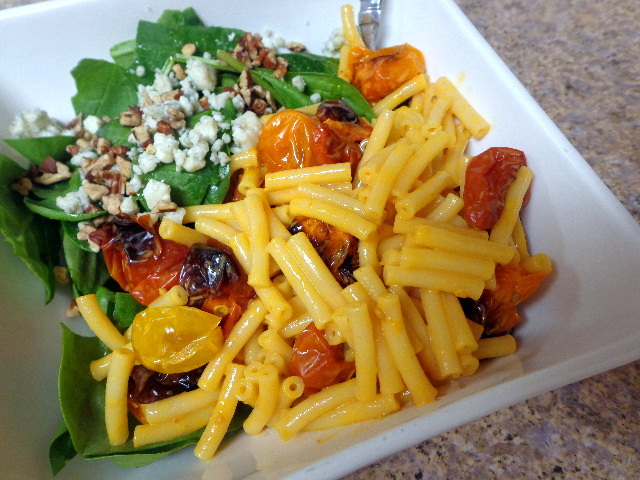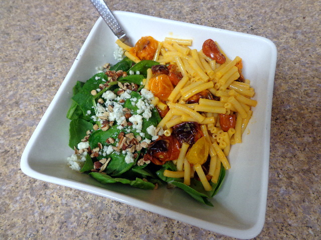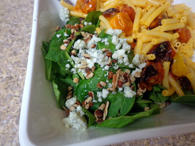 Super salad. I packed spring mix topped with blue cheese, sweet and spicy pecans, and chopped apple, then added some Italian dressing from the salad bar at work. P.S. The cafeteria was on point this week; I bought several cheesy slices of pizza and had creamy lobster bisque with giant pieces of meat.