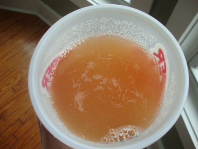 A giant diet pop with strawberries at Sonic.