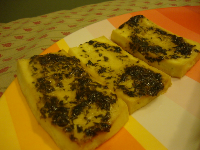 They gave us delicious bread with sun-dried tomato oil for dipping. My piece, x2.