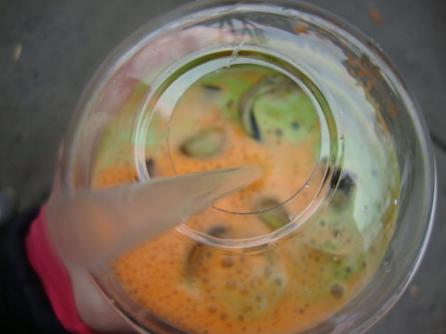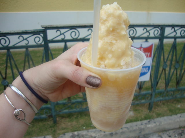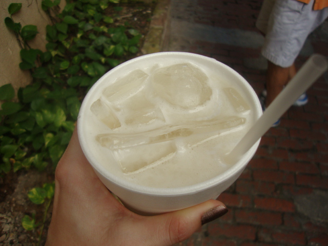 A while later I bought a fraco with milk (shaved ice with sweetened condensed milk).