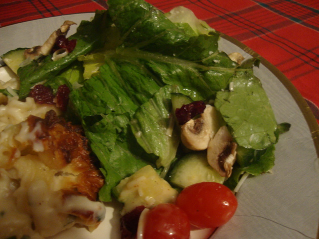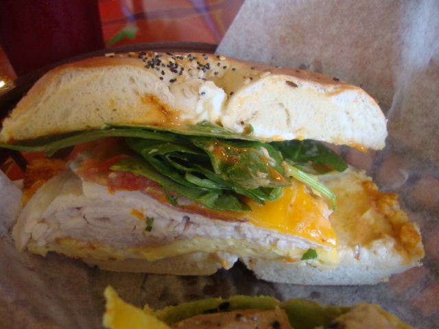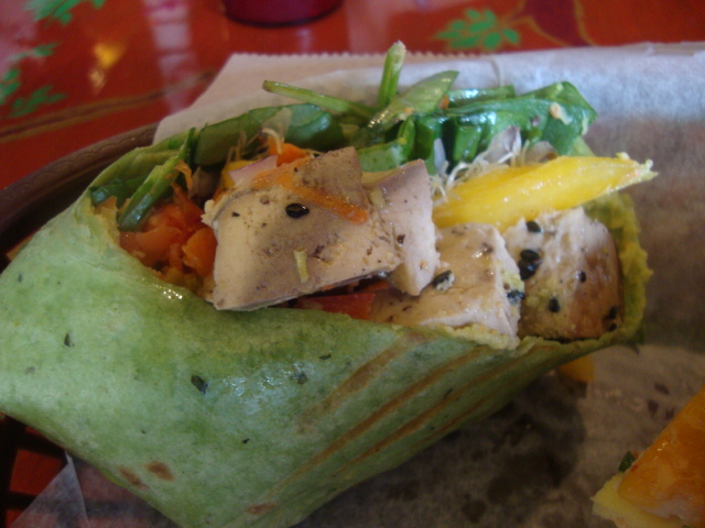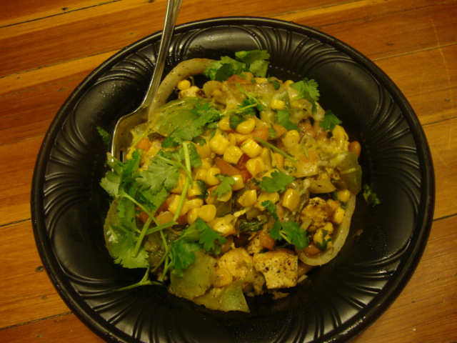 After my carb-filled day week I requested that they go light on the rice and cheese. Topped with cilantro, green pepper, onion, mushrooms, and corn salsa.
