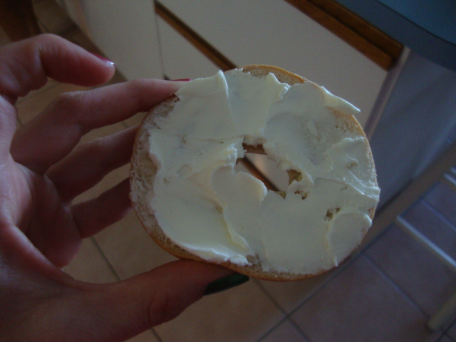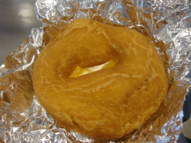In the St. Thomas airport I ate a johnny-cake with cheese.
