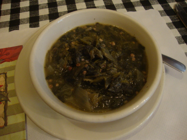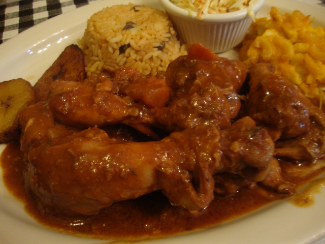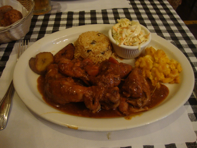 And a bowl of callaloo (a thick soup made with spinach and okra).