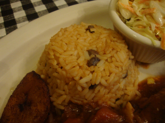 I could get past the bones to eat much chicken, but I stirred my rice and beans into the sauce and was in heaven.
