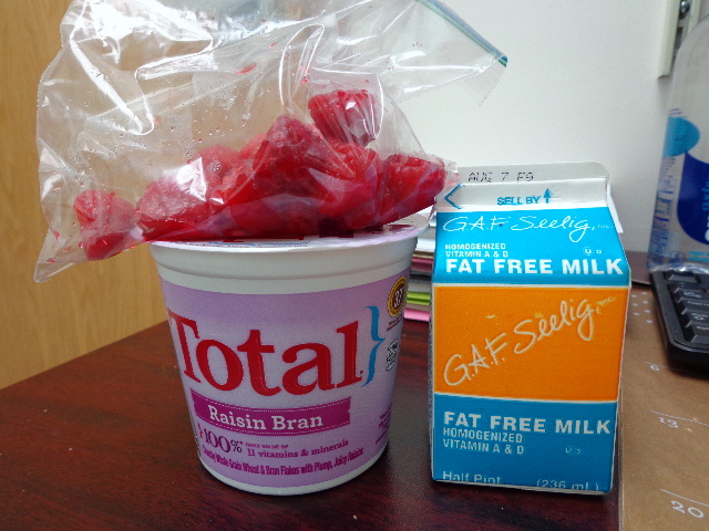{2} I’ll be less verbose about items 2 – 10, but that doesn’t mean they’re any less exciting. This homemade dinner looks God-awful, but it really was wonderful. TJ’s Sprouted Red Jasmine Rice with curried lentils and Jenna’s Baingan Bharta, topped with plain yogurt and Sriracha.