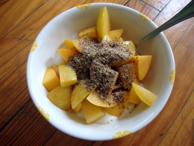 Lunch was plain yogurt with 2 Tbsp flax and chopped plum and nectarine.