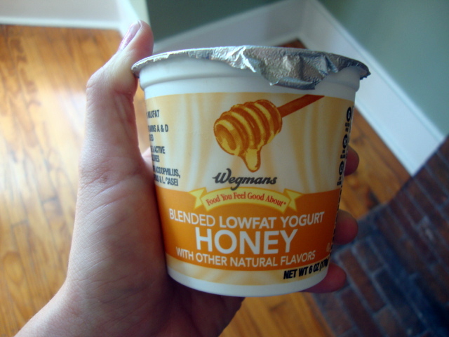 This didn’t fill me up at all and I ate lunch an hour later. And by ate I mean shoved into my face in under two minutes. A Wegman’s Low-fat Honey Yogurt.